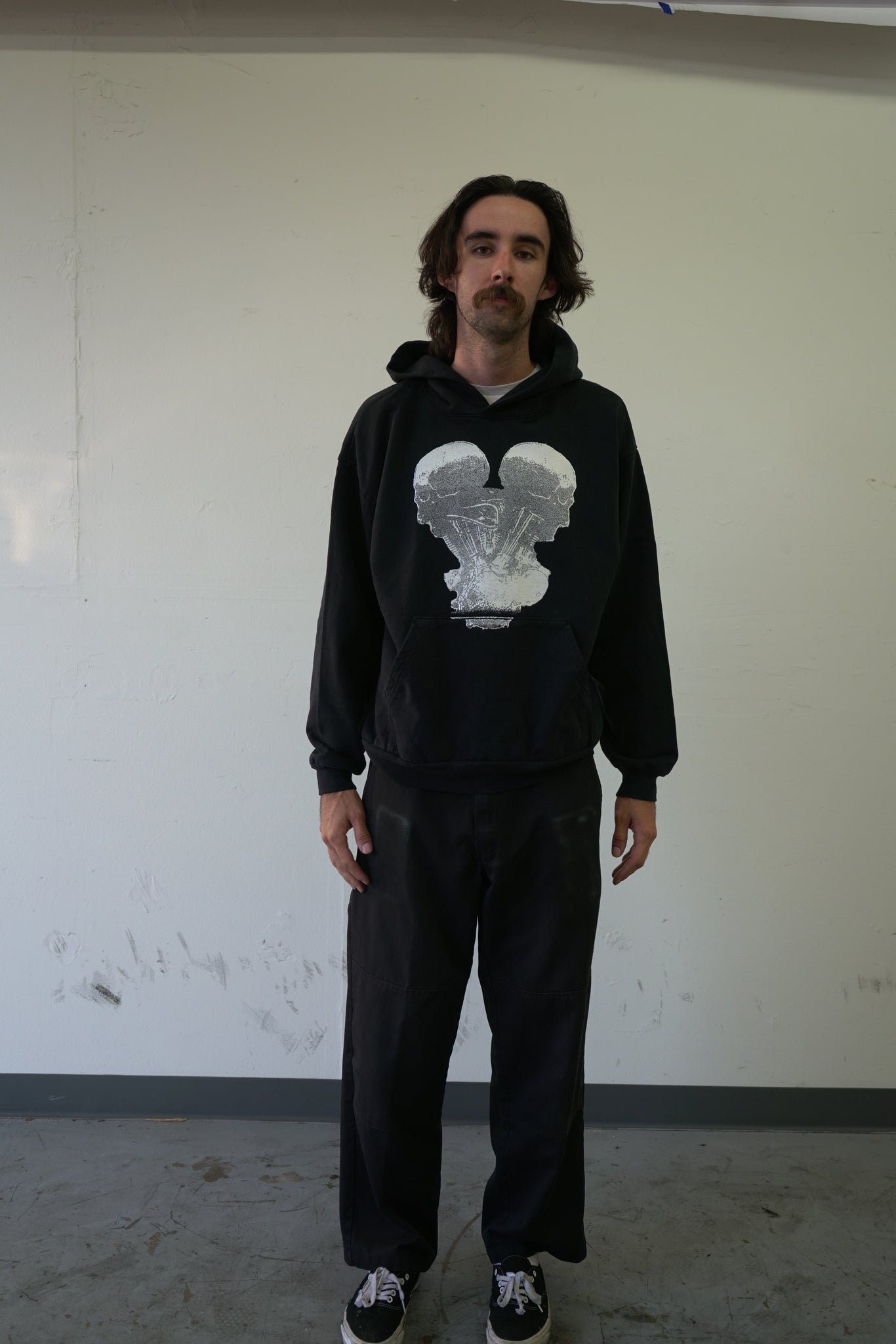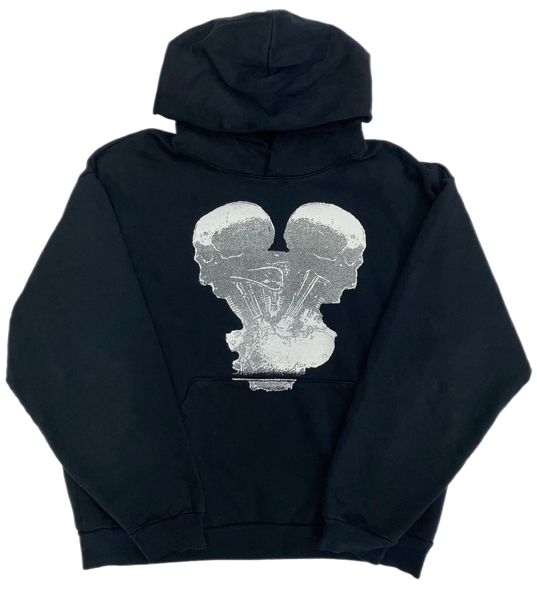 胸プリントとバックプリントが特徴的な14オンスの少し色褪せたブラックパーカー!